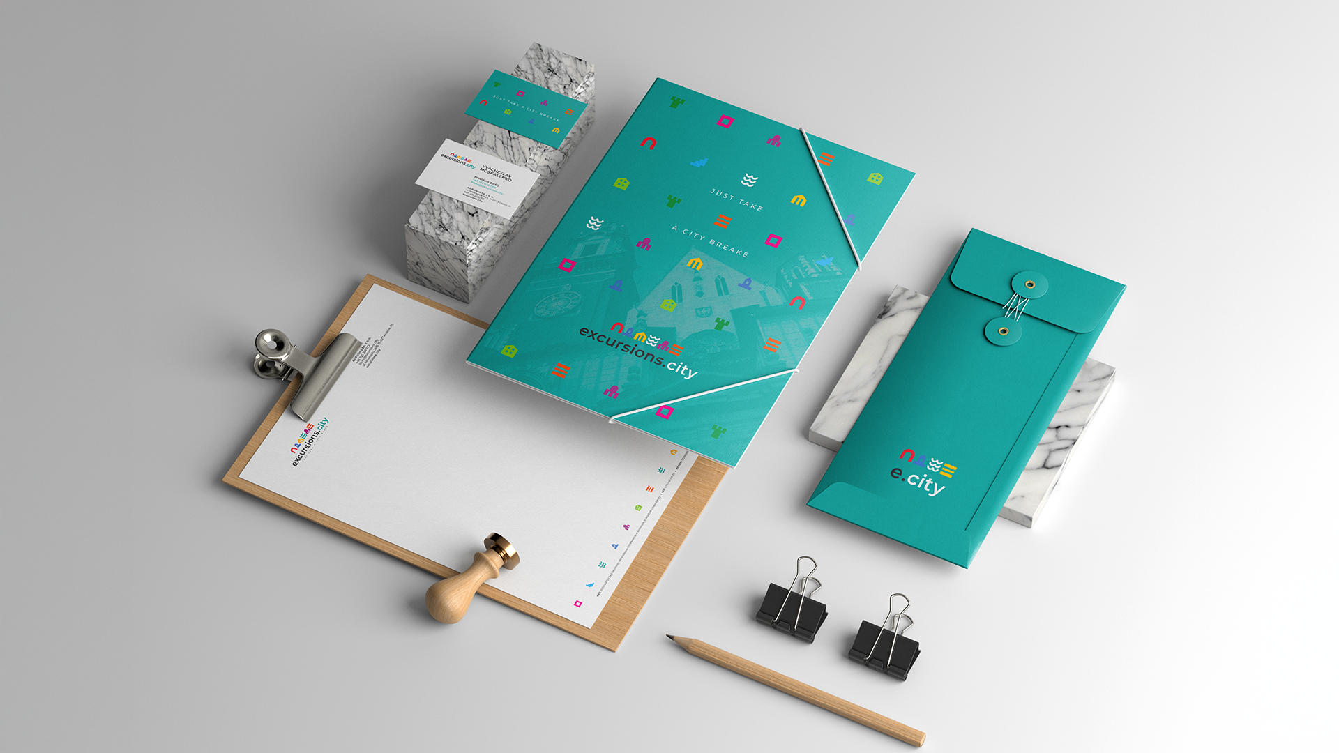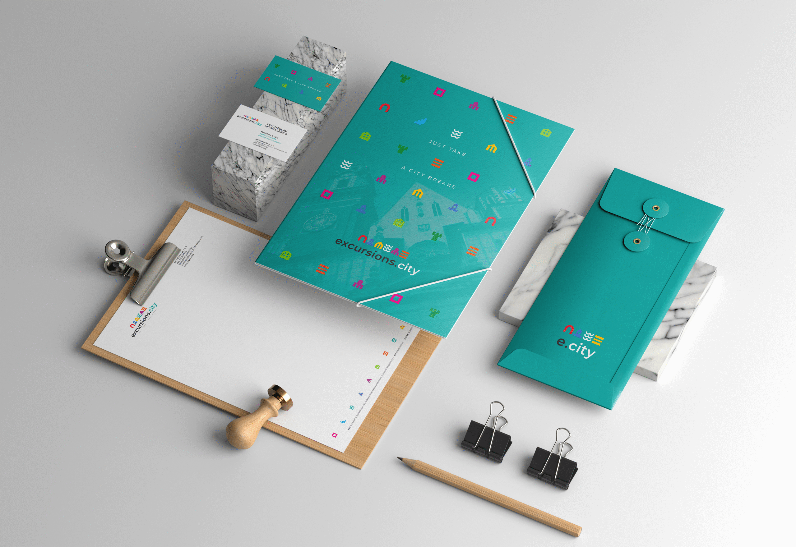 Wdrożenie zasad key visual’a do projektów marketingowych, przyniosło ciekawy efekt w postaci wielobarwnych materiałów firmowych, zgodnych z tożsamością i charakterem marki.