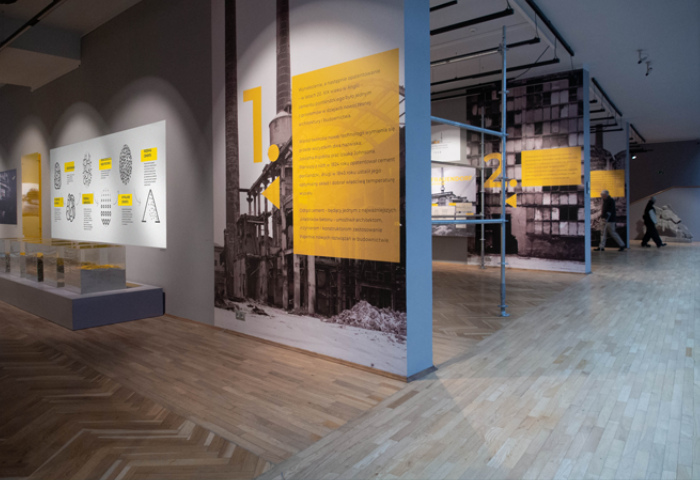 Studio KOLORAMA zaprojektowało koncepcję graficzną, logo wraz z całym systemem informacyjnym wystawy. Zostały opracowane infografiki ilustrujące min. ciąg technologiczny produkcji cementu, tapety do sal oraz tablice informacyjne.